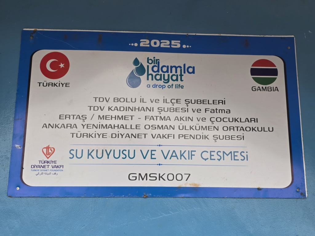 Okul öğrencilerimizin de kumbaralarında birikmiş paraları ile katkı sağladığı Gambiya 'da bulunan GMSK007 kodlu su kuyumuzun açılışı gerçekleştirilmiştir.